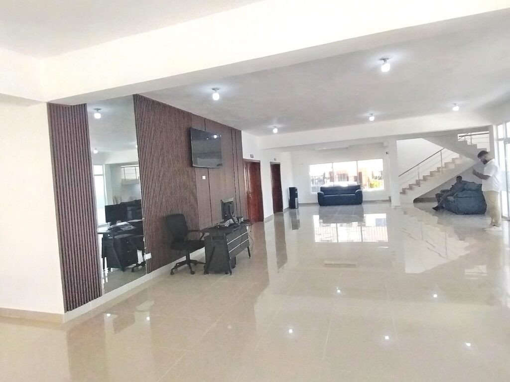 Además, cuenta con oficina administrativa, cocina, área de cafetería, rampas, parqueos internos y externos, incluyendo espacios para personas con discapacidad, entorno completamente asfaltado y servicios sanitarios.